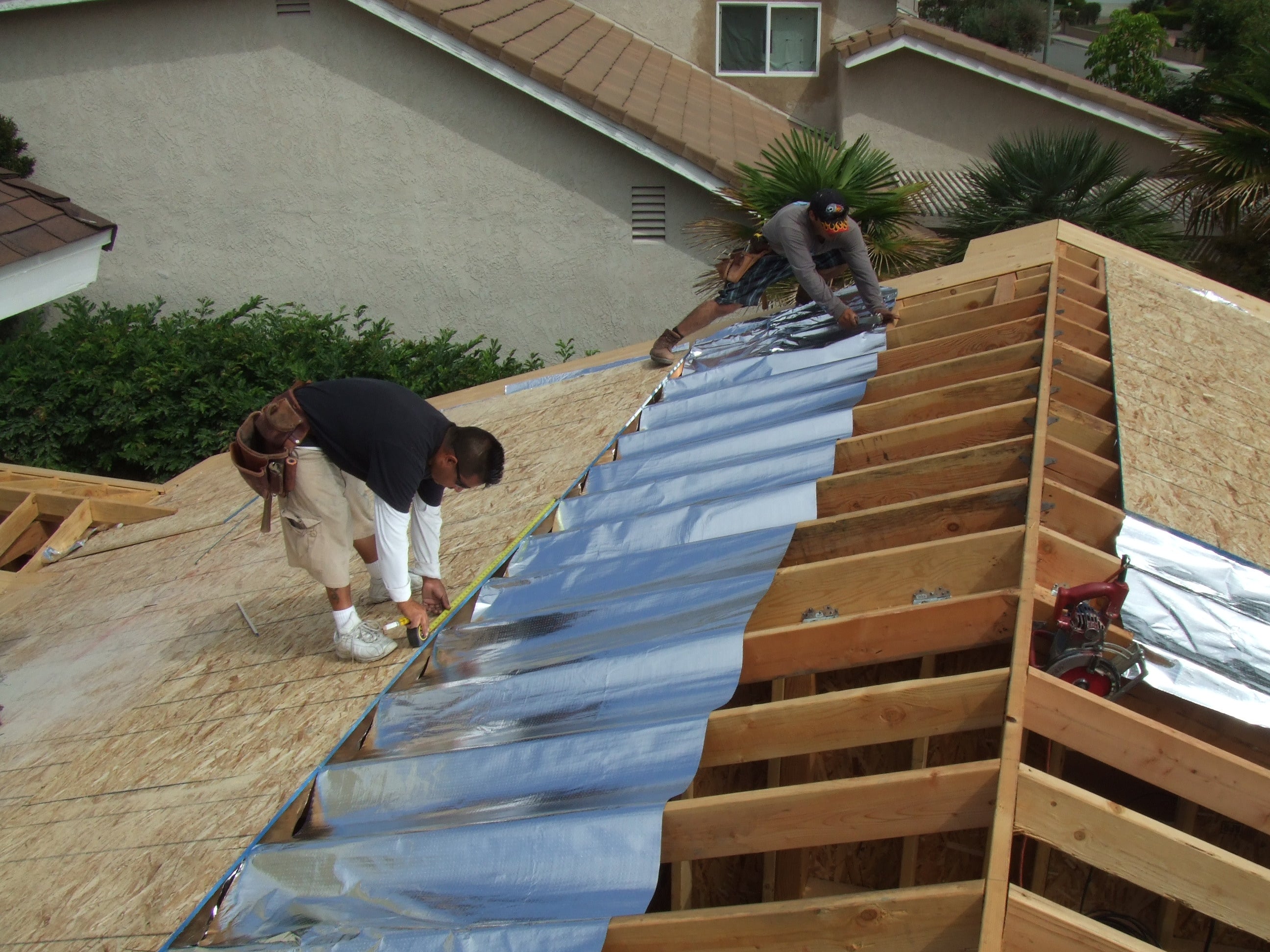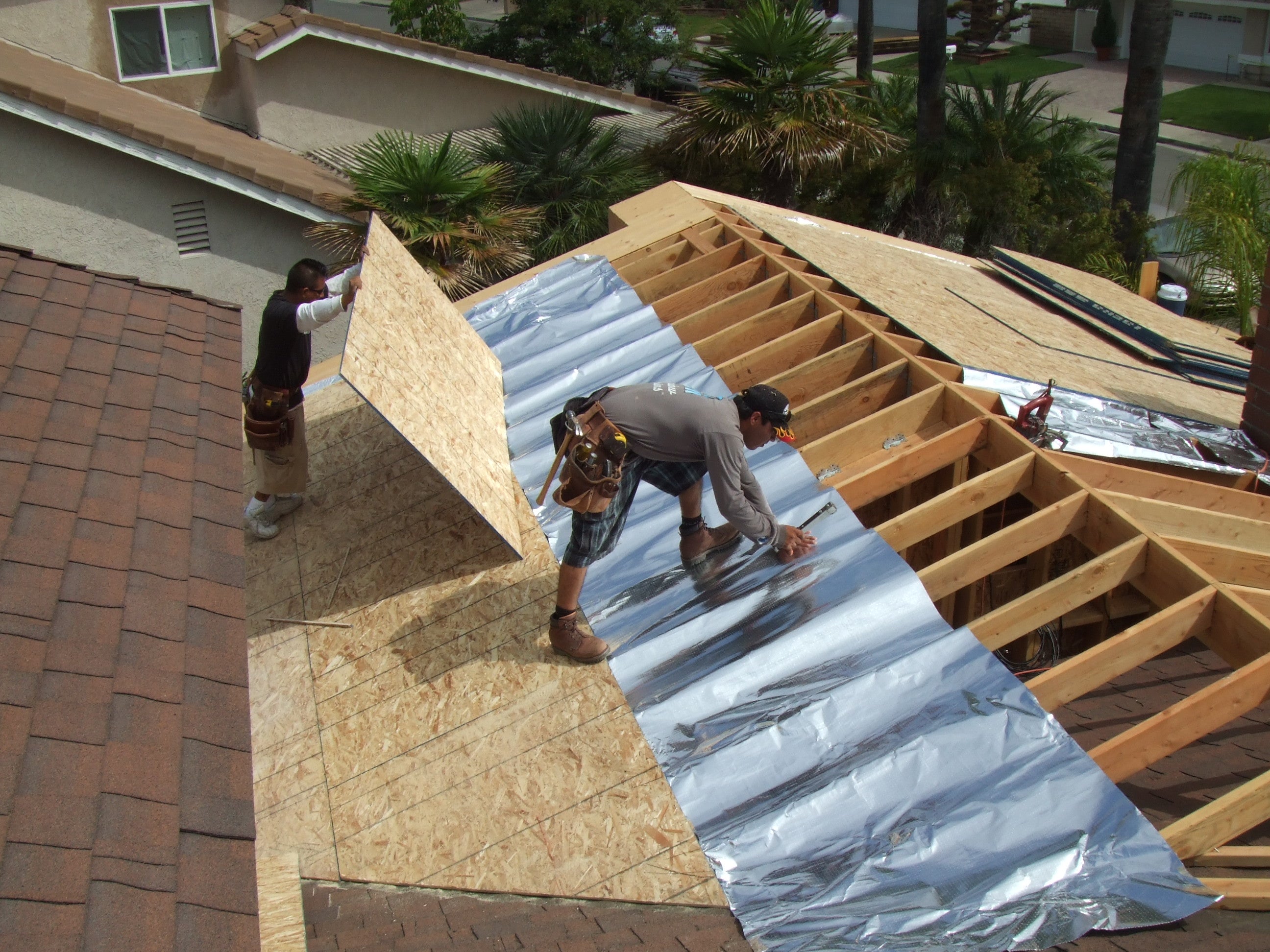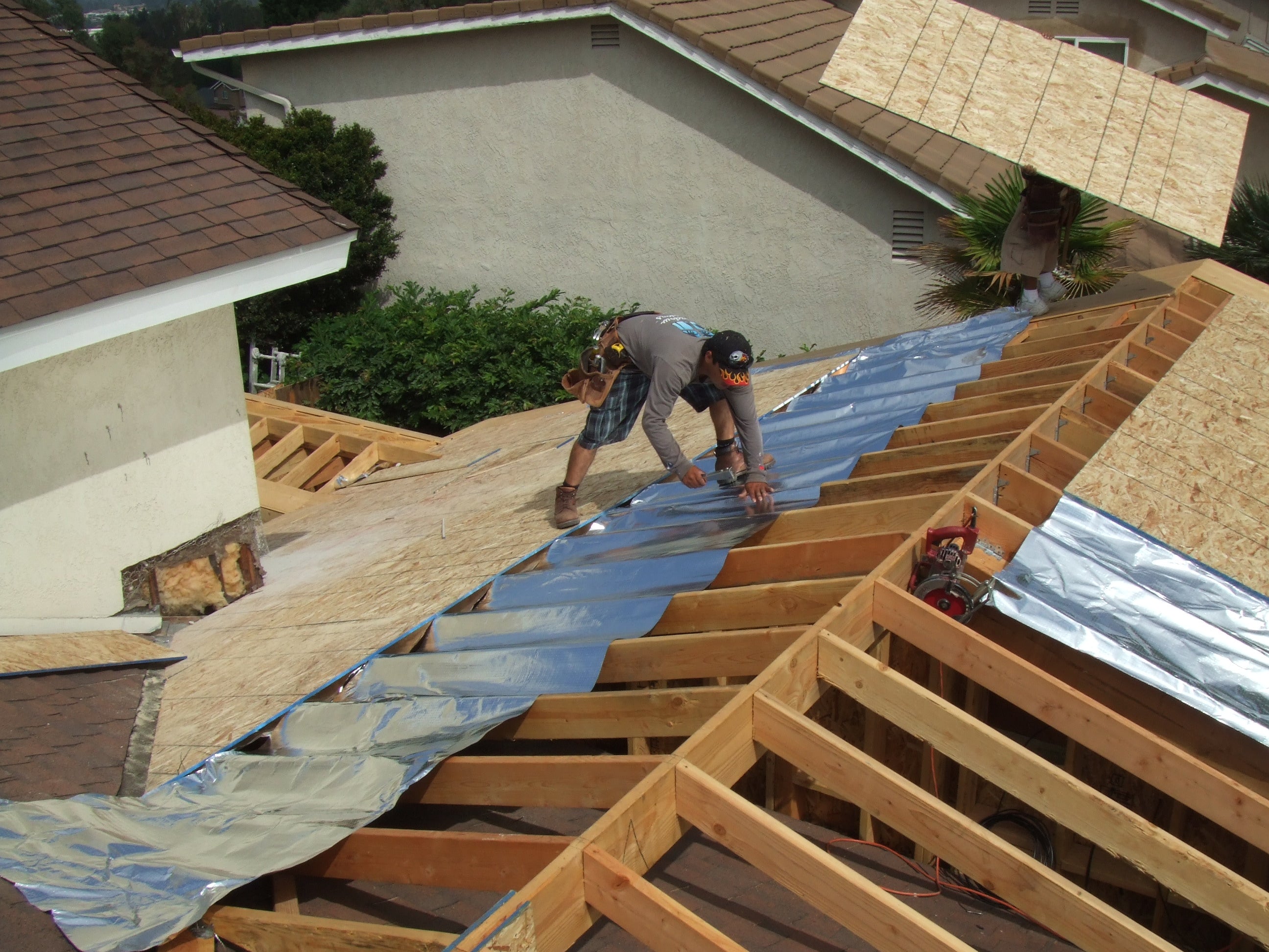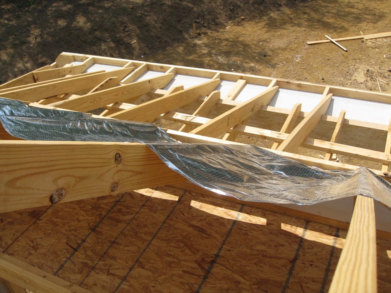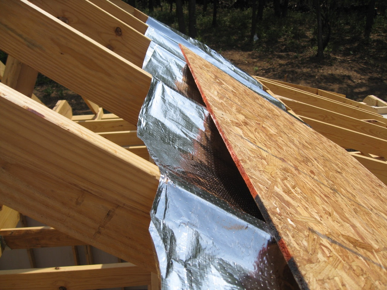 Photos from customers who use RoofingFoil™ under their new shingle roofs, before the decking is put on. Click on any image below to enlarge it.